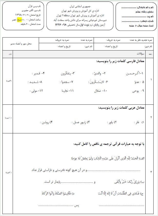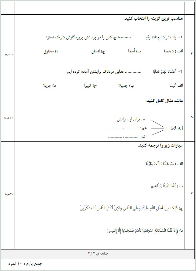 به پرسش های زیر پاسخ دهید .
