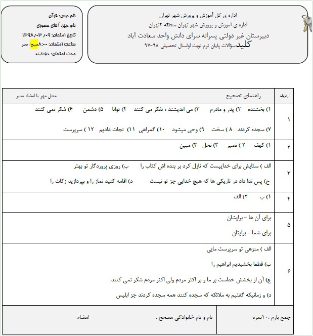 طراح سوالات: عرشیا نورمحمدی (مدیر وبلاگ)