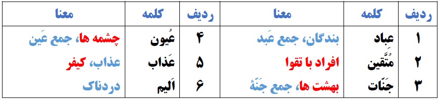 ۳) مطمئناً خداوند ذرّه ای به مردم ستم نمی كند. ۴) خداوند حتّی ذرّه ای ظلم و ستم را نم یبخشد.