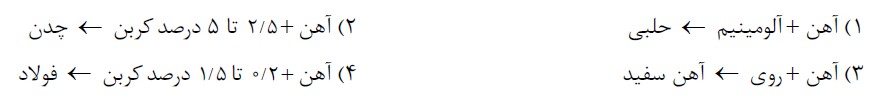 27 - وقتی آهن را با موادّ ديگری مخلوط می كنيم، موادّ جديدی به دست می آيد. در اين رابطه كدام گزينه نادرست است؟
