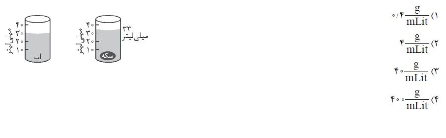 36 - با توجه به اعداد روی شكل, اگر جرم سكه 120 g باشد, چگالی سكه كدام است؟
